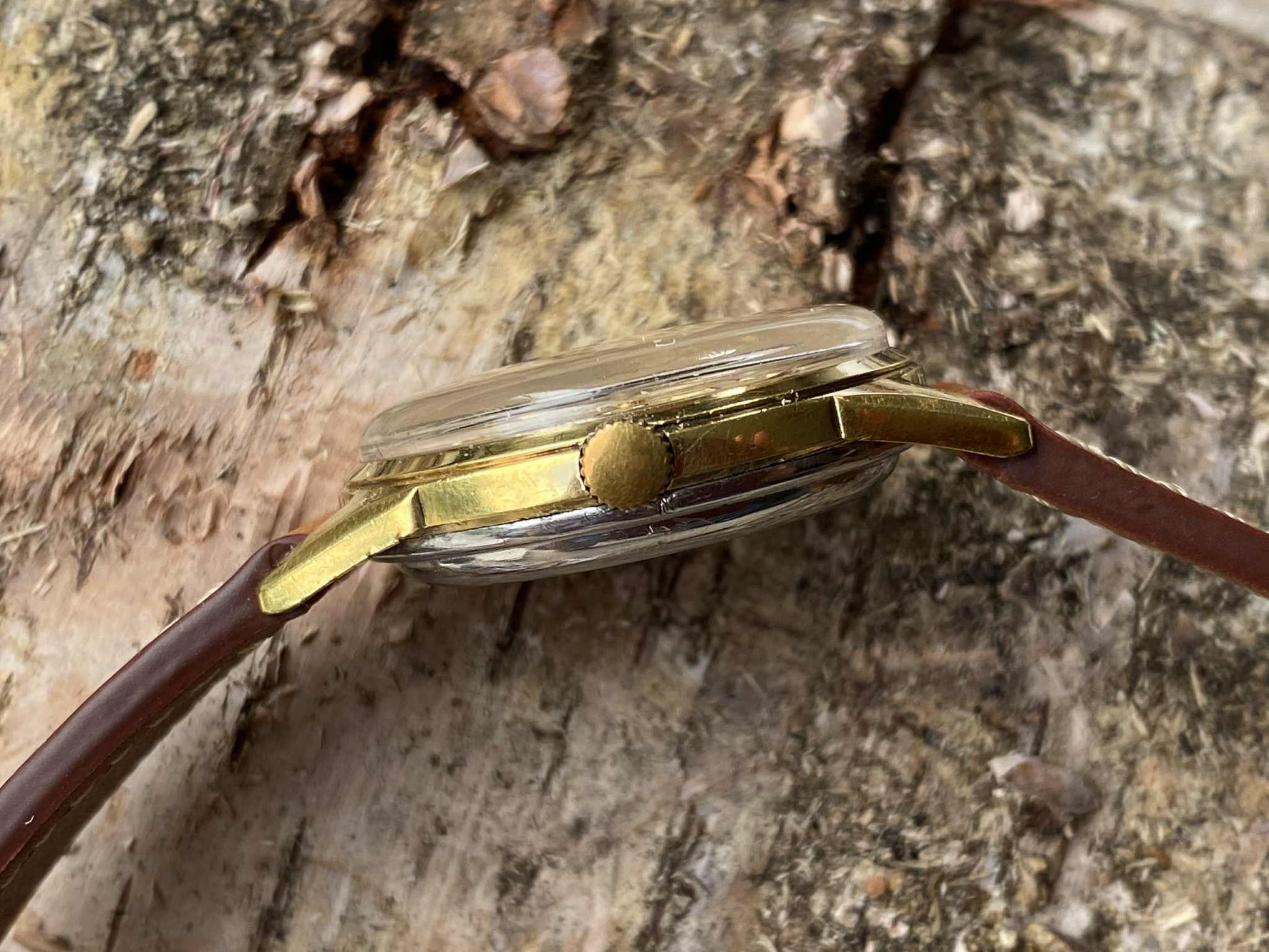 ゴールドプレートのケースは非常に綺麗で、摩耗はほとんどなく、経年によるごくわずかな擦れが見られる程度。ダイヤルは美しいパティナを帯び、インデックスと針のゴールドトーンが柔らかく馴染んでいます。英国らしい控えめな華やかさと、時の経過による穏やかな深みが調和した一本です。